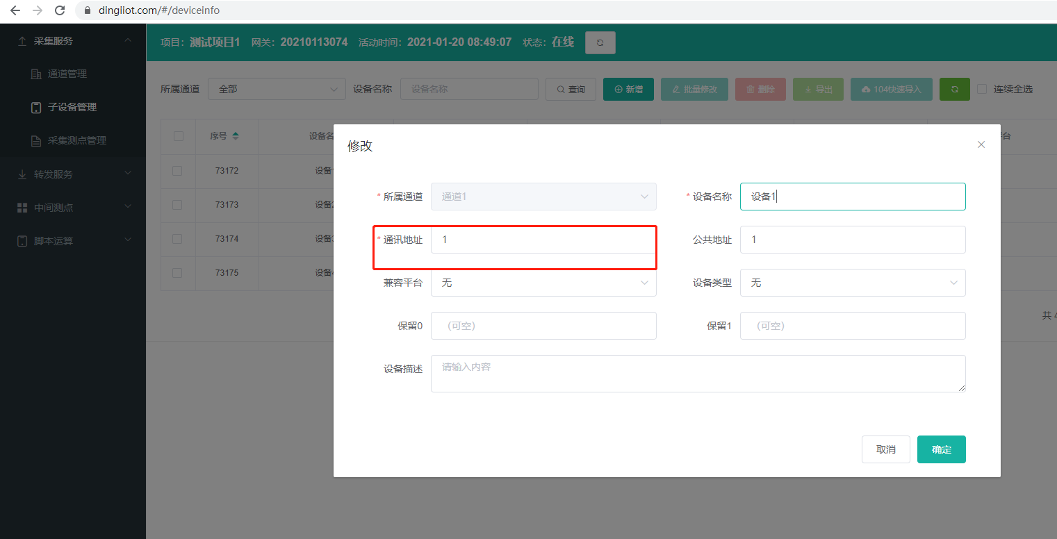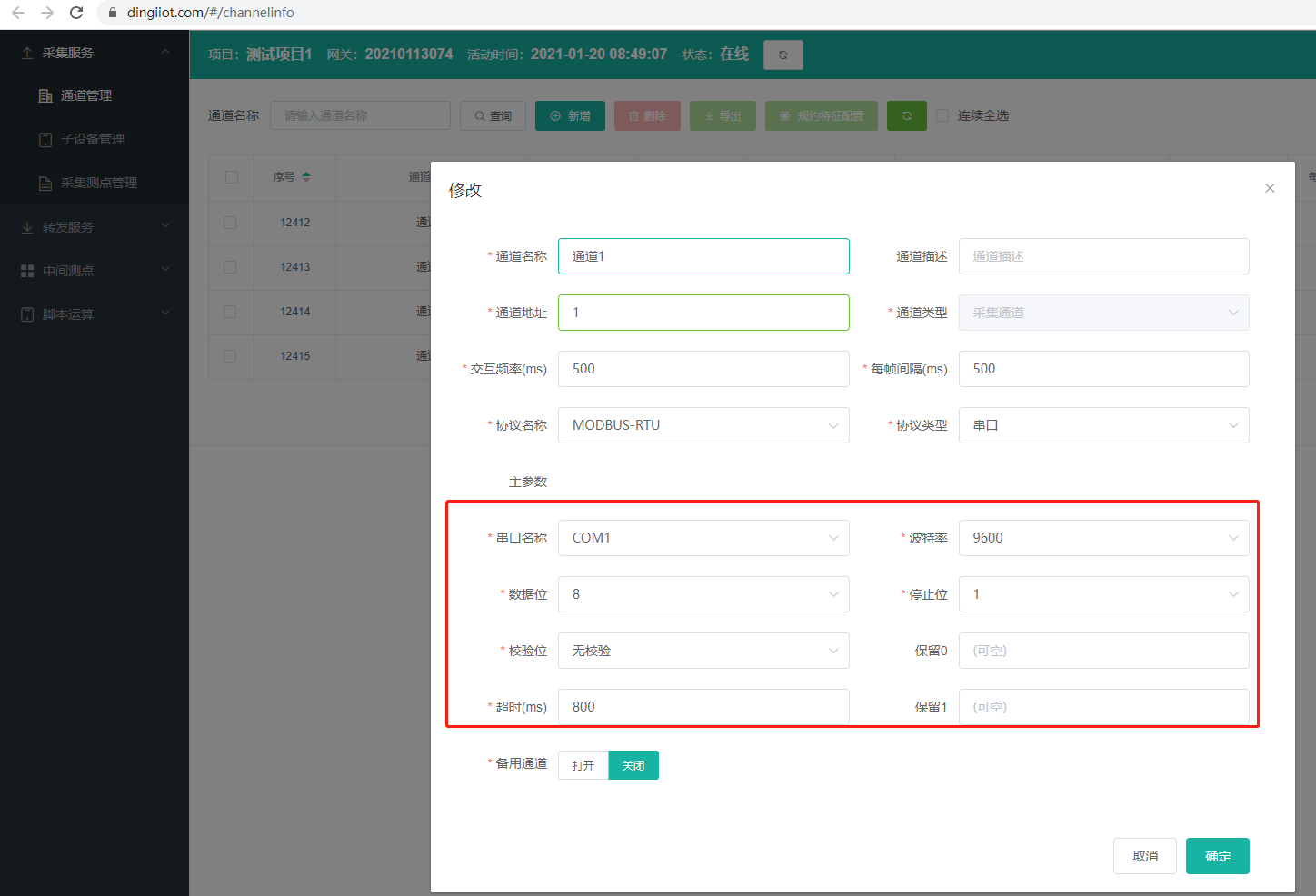 2、釘工云,打開網關列表->組態,在采集通道服務的通道管理界面,選中要查看的通道,點擊右上角的操作->通道監測,跳出通道監測報文界面,可查看到數據發送與接收過程。